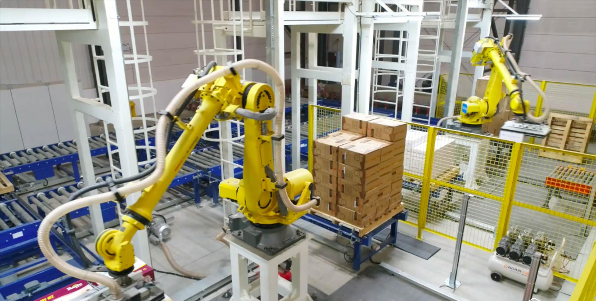 - 包装箱搬运码垛机器人机器人码垛适用范围广,可用于如饮料、食品、电子产品、日用家电、物流仓储、日化等行业。是产品下线出库前的最后一个步骤。配合物流输送线集成,可实现无人化生产。...